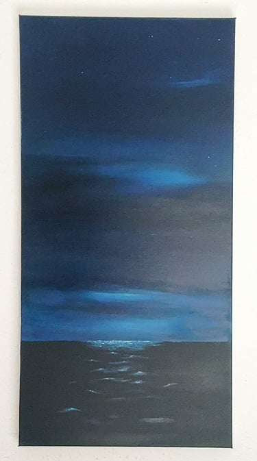 Estaciones, es una meditación pictórica sobre la metamorfosis del alma a través de la luz. Nace de la contemplación del mar como espejo de la conciencia: un espacio inmutable que, sin embargo, se transforma infinitamente bajo el influjo del tiempo y la mirada.